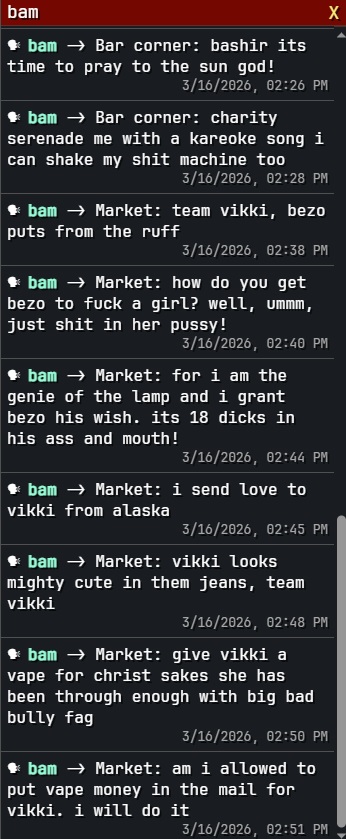 Imagine you get a harp gig and bam magera is there, in a house with a bunch of freaks and the speakers on the walls are blaring "rape faggot nigga" over and over again