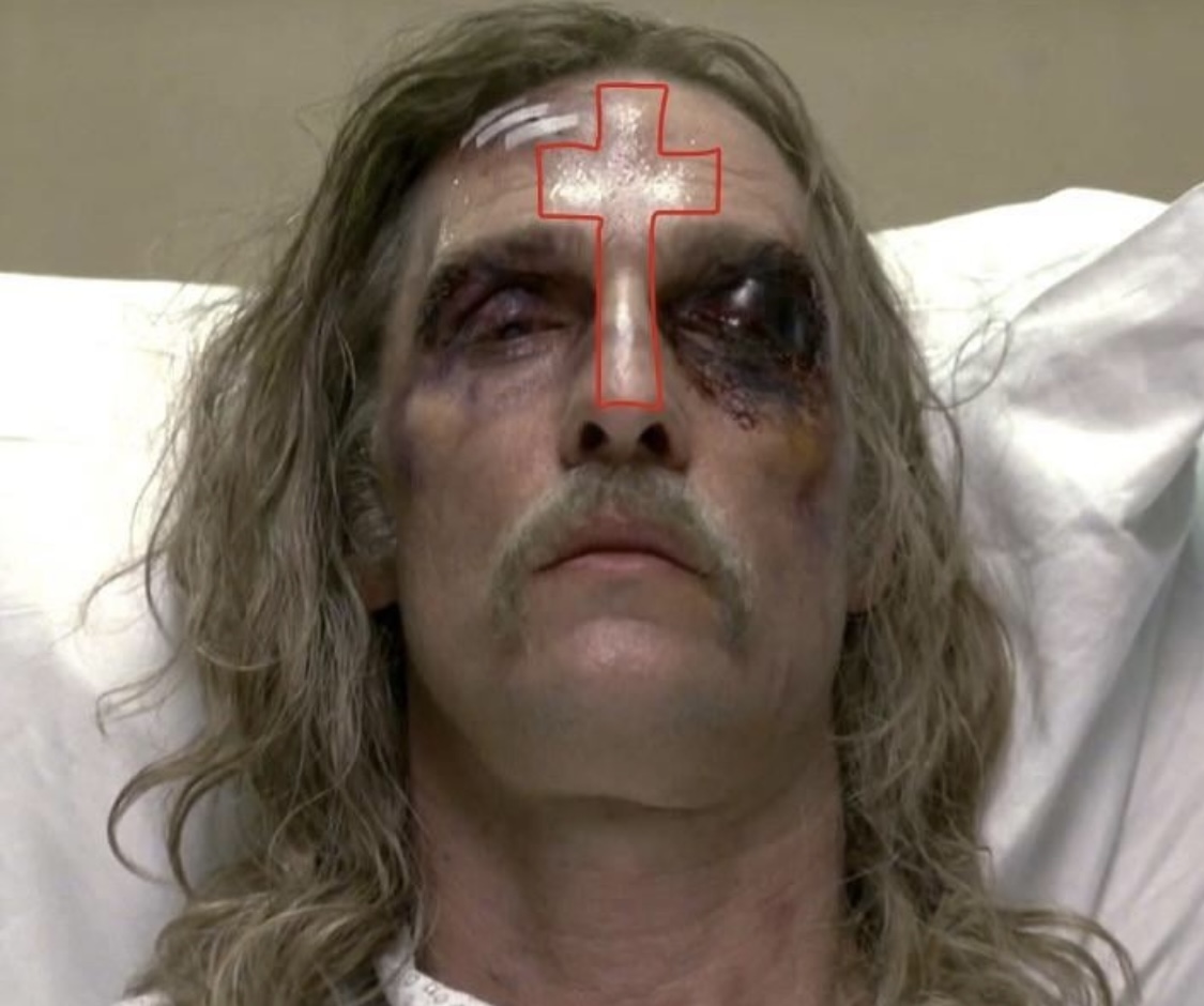 In the end, Rust doesn't find God, he just finds a sort of spiritual connection to his daughter. Perhaps an afterlife of sorts, but at no point is it implied that he now believes in Jesus and God as they're otherwise presented in the show.However, his character change begins before that scene; one could argue his dogged pursuit of truth even years after quitting the force could imply he still has some hope buried in him. Though he puts stock only in the "real" (aka not in any sort of God or etc), we can see he struggles with, and ignores, the strange otherworldly visions caused by his drug-damaged nerves. Another example that his nihilistic sense of self is a facade is how he shows up to Marty's house emotionally shattered; if he was as cool and collected as he projects he wouldn't be like that. We can easily see that he is not as nihilistic as he seems.When he finally witnesses Carcosa, his sense of reality is shattered. While the visions he hard were once caused by drugs, it is more ambiguous whether Carcosa is just another of his nerve-fried hallucinations, or an actual vision of an otherworldly phenomenon. In the latter case, he is awakened the the possibilities of reality beyond what is observable, and his nihilistic self is destroyed (and he himself is nearly stabbed to death).So then when he is in his coma, he is primed to open his spirit to the universe, encounter his daughter down there in the dark, and find hope.So no, it's not a sudden and random character leap, but the culmination of a season's worth of struggle and cope. >>218650716I'm phone posting so sorry for any typos and also I'm going to sleep so don't expect to hear back from my but I'll read any counterarguments tomorrow, as I am arguing in good faith.