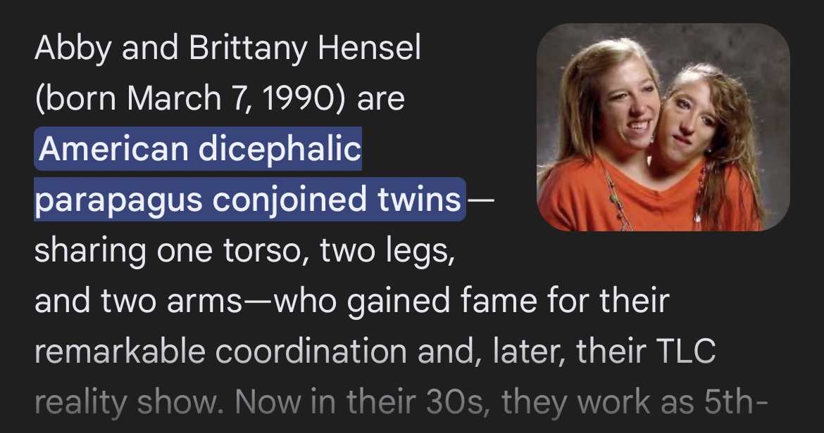 >>218659267they were unironically born that way. they shared a vein in the womb and bongo absorbed all the nutrients from bingo. they said that they spent a year apart before and bingo got weak while bongo got fatter too