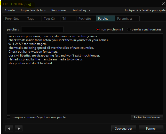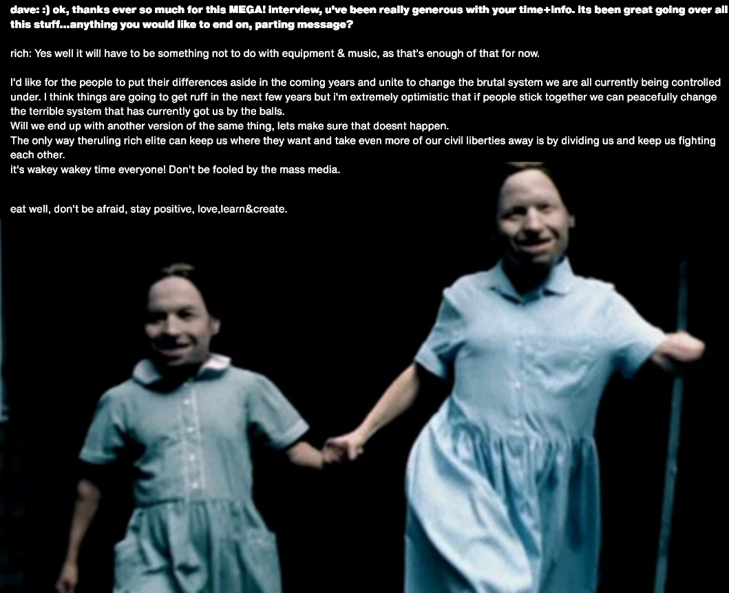 >>218679203That's a Richard D James quote from an embedded lyric in an mp3 shared on Soundcloud. He's never said a word about jews AFAIK.(He later pretended that message wasn't from him when it eventually got a lot of heat about 2 years ago, but I'm 99% sure that was a lie to prevent himself from getting cancelled)