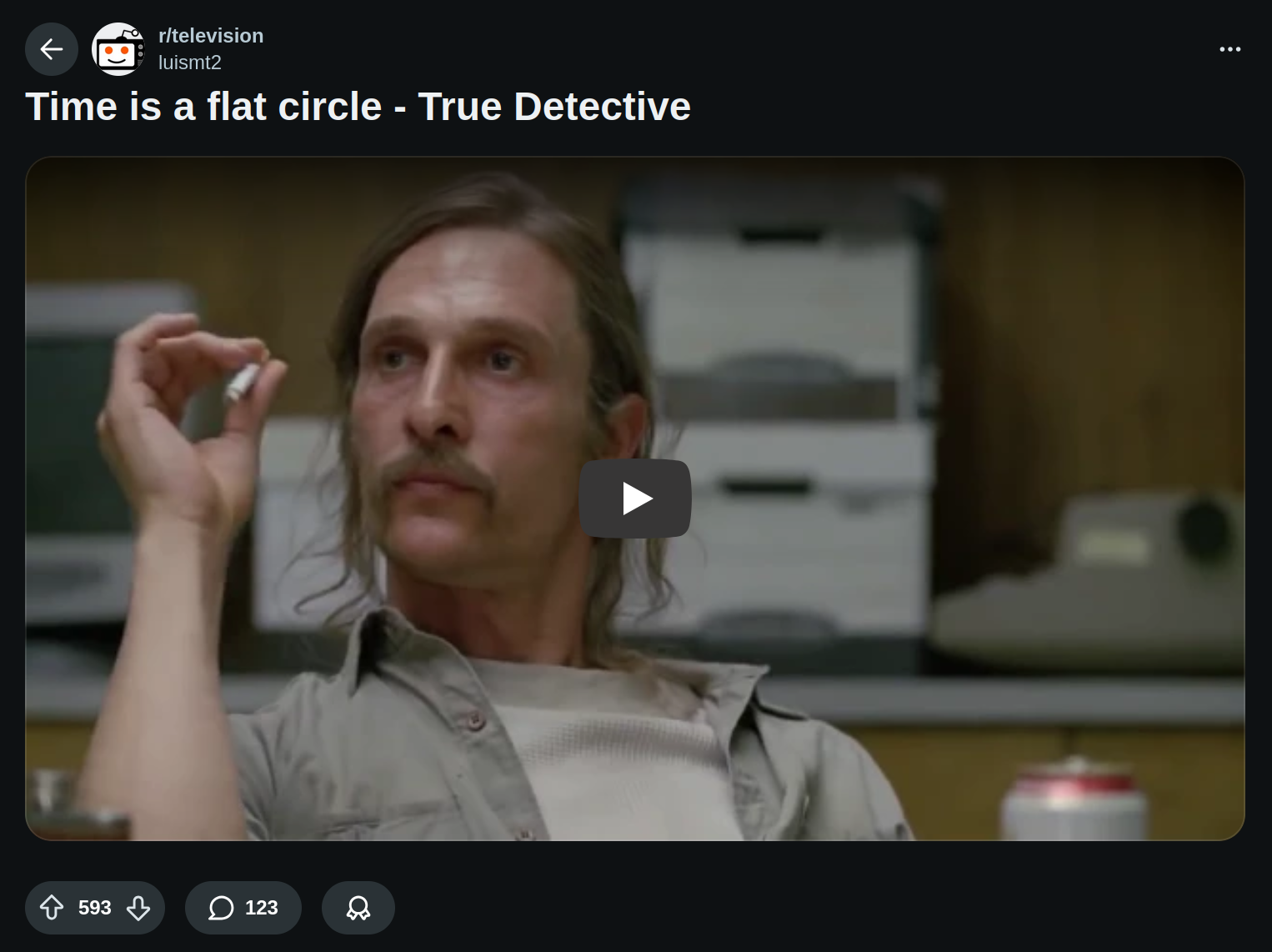 >>218671444>ledoo: time is a flat circle>17 years later: someone once told me time is a flat circlewould rust actually have got anything out of le doo in an interrogation?