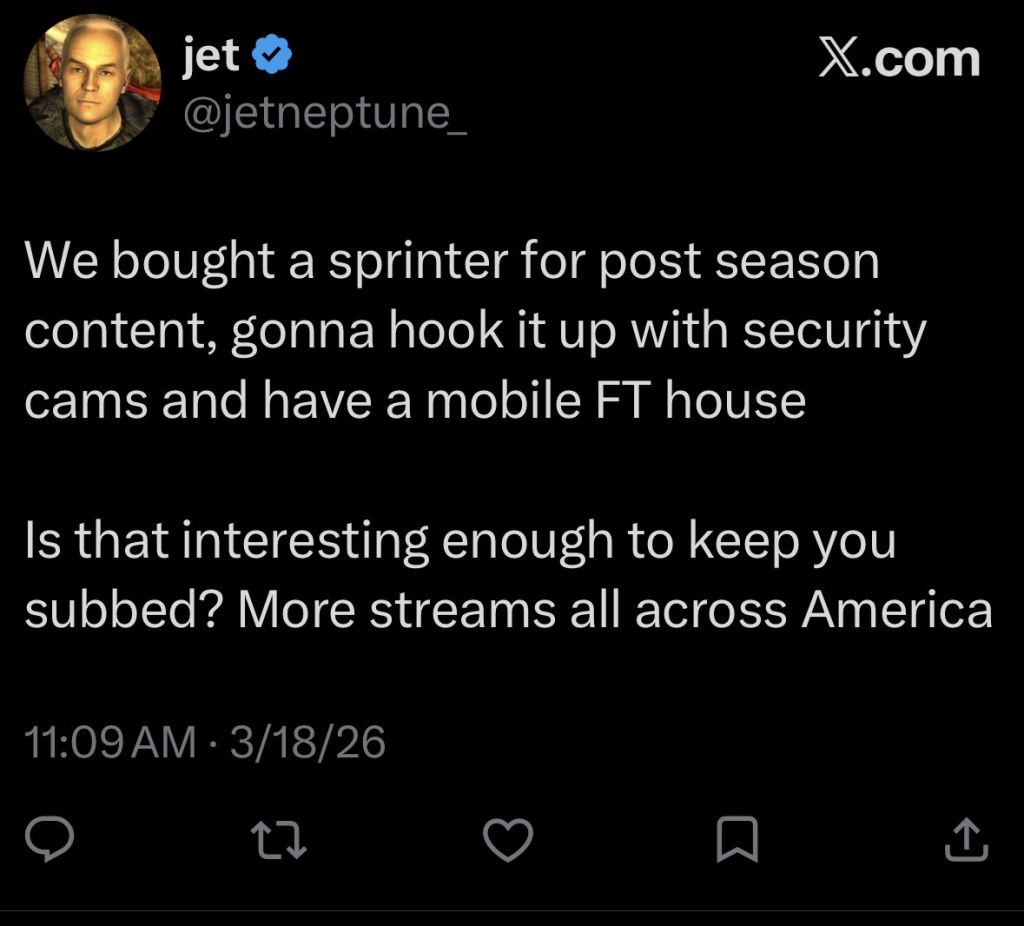 >/ftl/ NEWS-- Male strippers came to the house and Jet said tonight is gonna be "too hot for YouTube" (it hasn't been so far)-- Elimination SATURDAY: Whoever's plant retains the most leaves gets to choose who goes home. Twins immune, had top STOX. One plant has no owner and the fish will be able to bid on it-- Bashir destroyed most of the trees because he was tricked into destroying his own-- Anissa took Bashir's quran and defaced it-- Bam's burnout friend HEAD is the first freeloader. He called himself "the proud dad of a FAG"-- Jungle room unlocked , it has free fruit, new rooms to be added soon>Links:https://fishtank.rip/ (PPV)https://www.fishtank.live/https://x.com/fishtankislivehttps://classic.fishtank.live/ (works when main site doesn't)https://old.reddit.com/r/fishtanklive/https://www.instagram.com/fishtank.live/https://fishtanklive.fandom.com/wiki/Season_5https://www.youtube.com/@fishtankislive/videosDon't split threads, new baker is only needed after 150 imagesPrevious: >>218691977