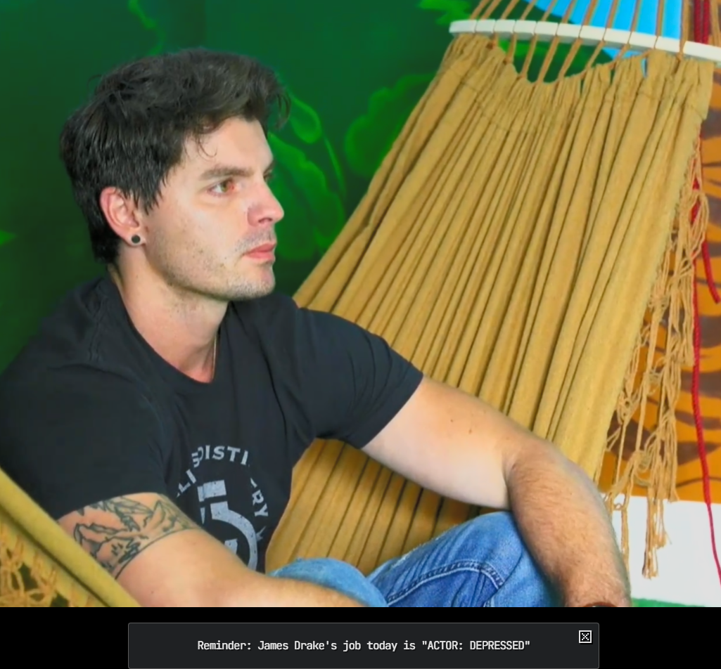 Depressed Drake edition>/ftl/ NEWS-- Bashir attacked the last plant, Emma got mad, Bashir said to her "are you on your period?" -- The plant survived-- James Drake's job today, Actor: depressed; he already convinced Bashir and JD he's actually depressed.-- Only Emma's (?) plant remain-- Elimination on Saturday-- Bashir destroyed the twins' plant while the others were distracted by male strippers.-- Vicky milked JD-- Vicky and Bashir had a kratom related fight-- Vicky is being gaslit by the TTS into thinking "kratom mogging" and "the kratom mog dance" is cool-- Twins were rewarded immunity for being top stox-- Head says he's not going to play with Emma's bean>Links:https://fishtank.rip/ (PPV)https://www.fishtank.live/https://classic.fishtank.live/https://x.com/fishtankislivehttps://old.reddit.com/r/fishtanklive/https://www.instagram.com/fishtank.live/https://fishtanklive.fandom.com/wiki/Season_5https://www.youtube.com/@fishtankislive/videosPrevious >>218707366