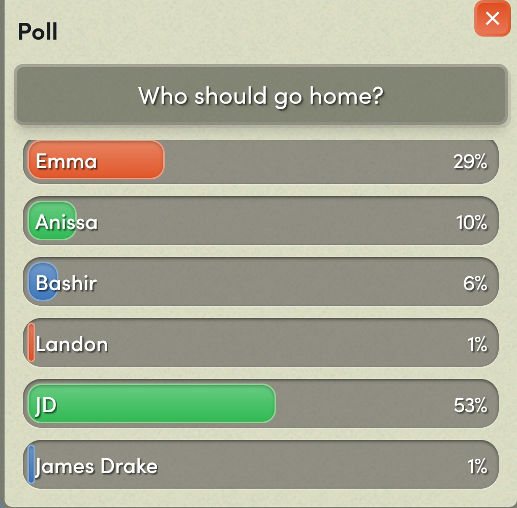 i agree. bashir deserves to stay. i'd rather it just be anissa or JD who gets kicked