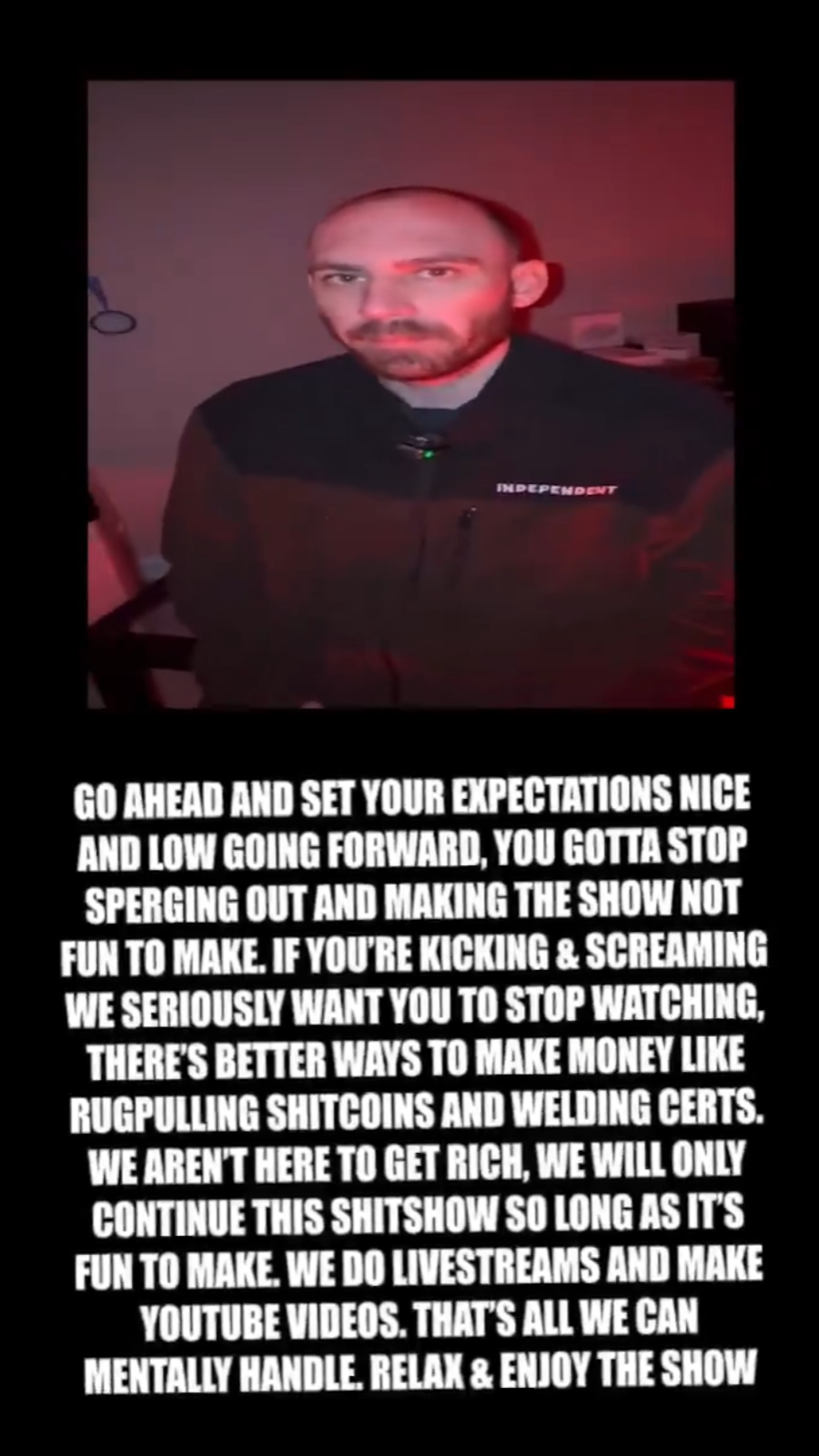 >Guys, I guess we're not doing Season 6, then. Because YOU aren't showing up to support even though YOU ASKED ME to do Season 6 of Fishtank.