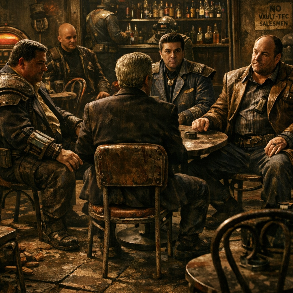 >TonyWell you requested this sit down so what we talking about>PhilIt's Mr House. He's making moves>TonyMaking moves? He's been fucking silent for years what makes you say that?>PhilAs I understand it someone from your crew delivered an item to him>Tony to SilvYou know anything about that?>SilvNews to me Tone>TonyWe haven't heard nothin'>PhilOh so that Benny cocksucka is just lying to me when he said the Courier was one your guys?>TonyAre you calling me a fucking liar?>PhilDon't play smart with me. After all that shit you guys caused in Novac and I covered your ass you at least owe me some fucking honesty>TonyWe said we know nothing about it, and if you're getting angry Phil this sit downs over. Call me on the Pipboy when you calm down*Exits*>TonyHow the fuck did he find out about that? We used a friend of a friend and that psycho ties it back to our guys?>BobbyNo way he knows, he's guessing>TonyThis is the last thing we need Jesus fucking Christ