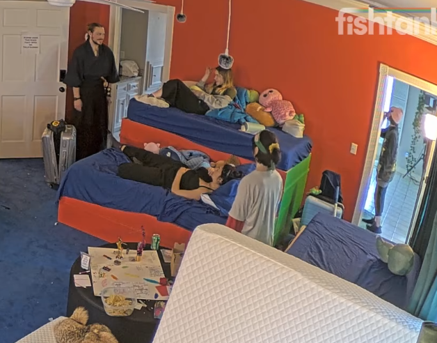 Ben Edition>/ftl/ NEWS--The boys are gaming-- The girls are doing a science experiment -- Boys were given the keys to the computer lab, girls are not allowed in, peek in or know what the boys are doing.-- Fish have a day off from their jobs today-- Landon tried shitting in the jungle and his dick fell out.-- Fish were tasked by Bam to make Landon believe he did something really bad during drunk POS.-- Jet is looking for freeloaders: "hot girls and new faces apply".-- Vicky walked out the kitchen door and self eliminated, on purpose.-- Bashir came back, as a fish/contestant.-- Head left-- Landon won drunk POS-- Drake mad at Jet for bringing Bashir back.-- Drake realized winning challenges don't matter>Links:https://kick.com/fishtankhttps://www.fishtank.live/https://classic.fishtank.live/https://fishtank.rip/ (ppv)https://x.com/fishtankislivehttps://www.youtube.com/@fishtankislivehttps://old.reddit.com/r/fishtanklive/https://www.instagram.com/fishtank.live/https://fishtanklive.fandom.com/wiki/Season_5Previous >>218825498
