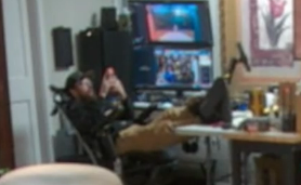 no sam = jet putting his bare feet on his desk