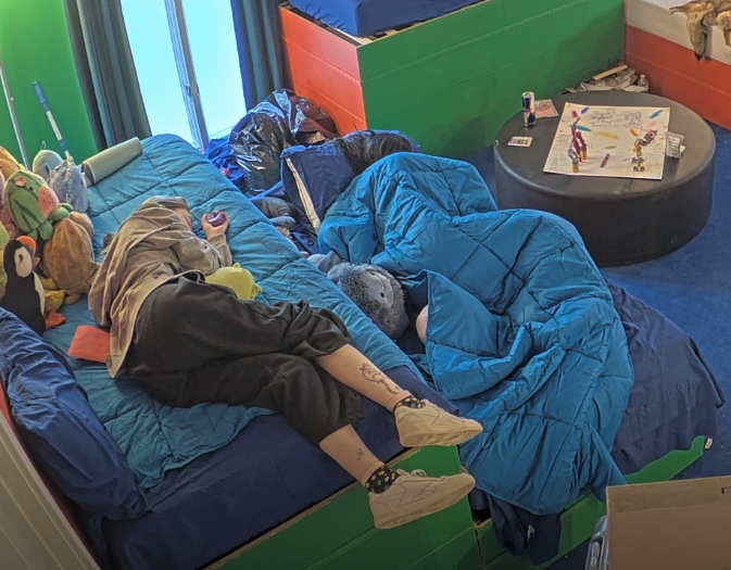 Girls think its content to stand infront of a door for over 3 hours instead of trying to break it down with something.