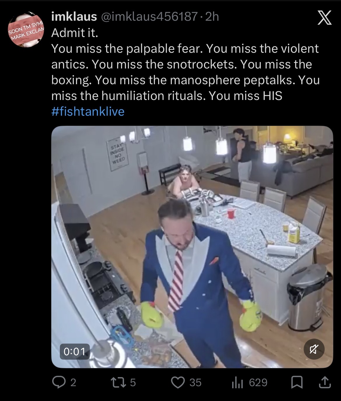 Horror movie>/ftl/ NEWS-- challenge grind still owning these niggas-- boys zombiemode round 20 + tiki head smash KEK, JDRA chad mogging the door-- girls stuck on the door for far too long-- Bashir straight ELO terrorist carrying the whole stream, that nigga Jedi mindtricks everyone, /ftl/ already crowned him final boss-- Jet begging for a new freeloader on Twitter, "replace Vicky energy" lmao speedrun the roastie replacement arc-- house is straight pigsty, Landon hasn't janitored in 48h, cheese fries and "hang in there" posters everywhere-- chat spamming BOYS RULE GIRLS DROOL on repeat, glass ceiling victory posting-- fish numbers same autism: ANIS ₣152 | BASH ₣195 | EMMA ₣147 | HEAD ₣117 | JD ₣128 | JDRA ₣200 | LAND ₣290 | ROBO ₣119 | TWIN ₣298 | VICT ₣124-- Taylegh might be coming on, God I hope none of the s4 fish show up>Recap for day 7 (CRAZY ASS DAY)https://www.youtube.com/watch?v=yq4e4_NJJgE>Links:https://kick.com/fishtankhttps://www.fishtank.live/https://classic.fishtank.live/https://x.com/fishtankislivehttps://www.youtube.com/@fishtankislivehttps://old.reddit.com/r/ >reddit link redacted due to shitty bakinghttps://www.instagram.com/fishtank.live/https://fishtanklive.fandom.com/wiki/Season_5Bake at 100 images. Production wants us to bake at 100 imagesIgnore sub 700 threads as they are made by Nigger Skullpre >>218836733