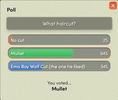 I was thinking about getting a mullet for the fuck of it, never tried it. I'll take this as a sign to do it.