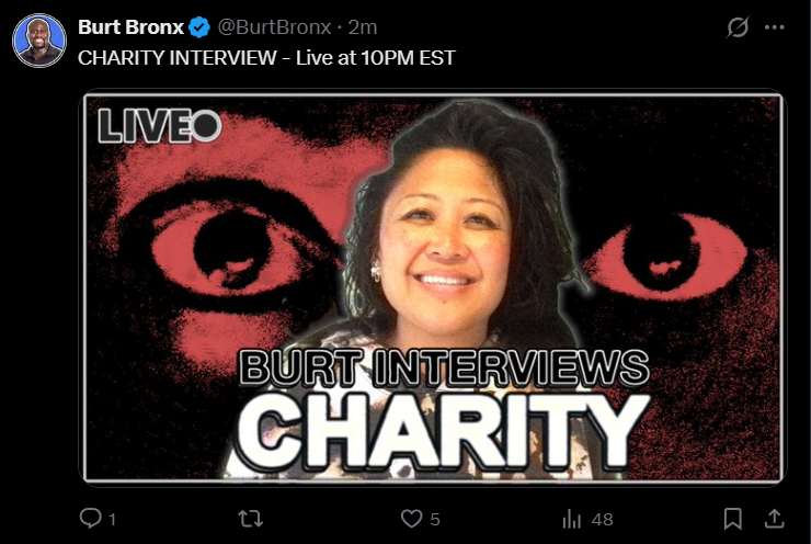 guys burt is interviewing charity rn...must watch