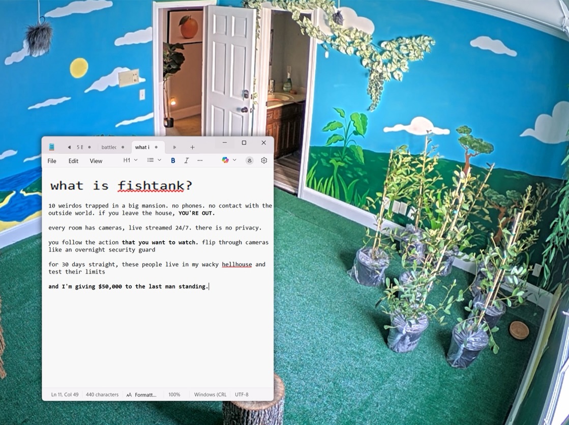 >>218870396>no contact with the outside world>if you leave the house, you're out>live streamed 24/7
