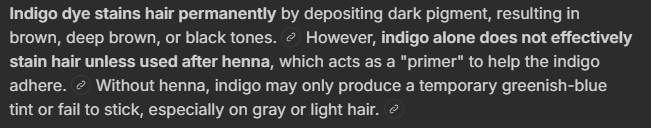 >still going on about the indigo dye