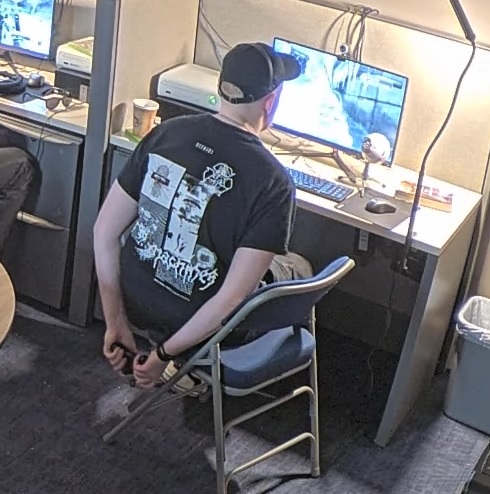 TTS comes through and asks Jet about head-shaving. He almost slips up and nearly says "that was a Sam thing".https://i.4cdn.org/wsg/1774318584590561.mp4