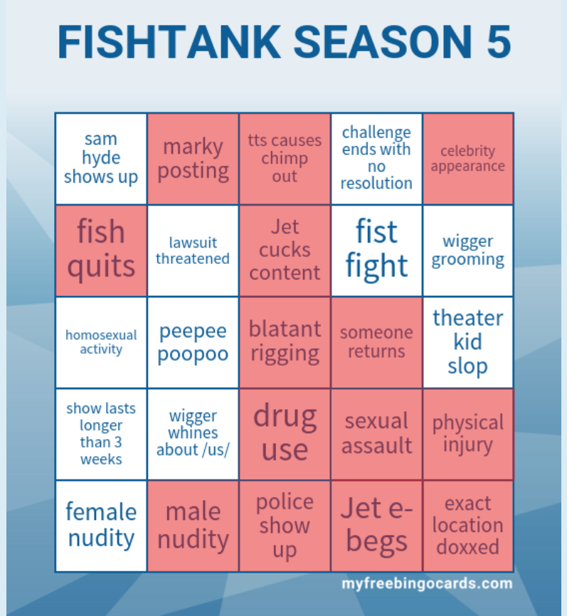 >/ftl/ NEWS:-- Emma got a suicidal letter from her (possibly Jewish) BF but she's saying... the letter is real and Jet gave him infinite tokens so he can send more shit...-- Landon diffused the twins' conflict when James couldn't... https://i.4cdn.org/wsg/1774324951963620.webm-- One fish's arm will be "amputated" every 12 hours... JD's right arm is tied behind his back right now...-- The wiggers have taken the food from the refrigerator because no one's buying shit from the market... the fish tried to resist to no avail... https://x.com/thedesign59/status/2036244753826595047-- Bingo is losing too much weight so Jet is making her eat baby food...-- Landon might have scurvy... https://x.com/UnevenEyebrow/status/2036207553982403031-- Klaus and Benleaks: stop trying to bake threads on /tv/! https://i.4cdn.org/wsg/1774250232374973.webm-- Elimination on Wednesday, typing challenge, winner gets bullet>Links:https://fishtank.rip/https://www.fishtank.livehttps://kick.com/fishtankhttps://classic.fishtank.livehttps://x.com/fishtankislivehttps://old.reddit.com/r/fishtanklive/https://www.instagram.com/fishtank.live/https://www.youtube.com/@fishtankislivehttps://fishtanklive.fandom.com/wiki/Season_5NEVER reply to early threads! Let them DIE. Only use threads made at the RIGHT time!Previous: >>218877574