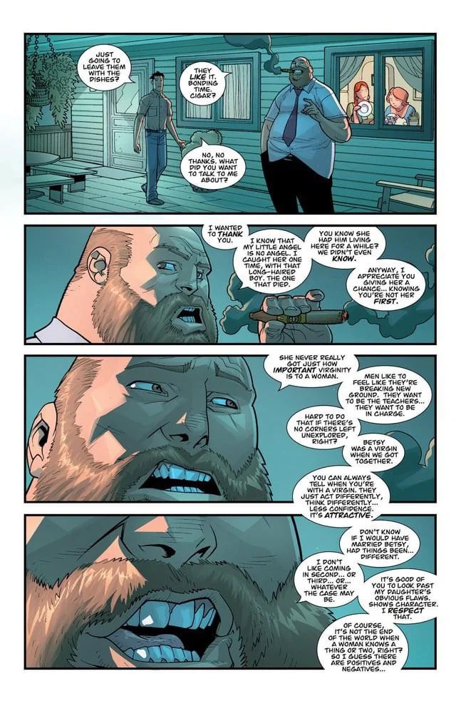>>218885141The point is that Mark is becoming more Viltrimite rather than more human. We see that in Nolans flashback that the smallest mercies are completely disregarded in the Viltrum Empire and that they choose to kill as a solution. Mark has been battling this question since his start as a hero when his dad literally shows him you can just kill thousands of people. Mark gets further pushed by this when his alt selves literally destroy Earth and enact a fucking extermination campaign on the heroes of the world. Mark is LEARNING his way, so you will see him go thru the discovery, process and then learning from his experience. That doesn't mean Mark doesn't believe in death or that death is the right answer. It means that Mark as an adult is learning that every choice has a consequence and he must choose the make the choice he can live with the consequences of. Naturally as a child he prioritizes the preservation of his original most important things: family and friends. But as he gets more experienced with the world this becomes harder as it means he will literally sacrifice thousands to save them.