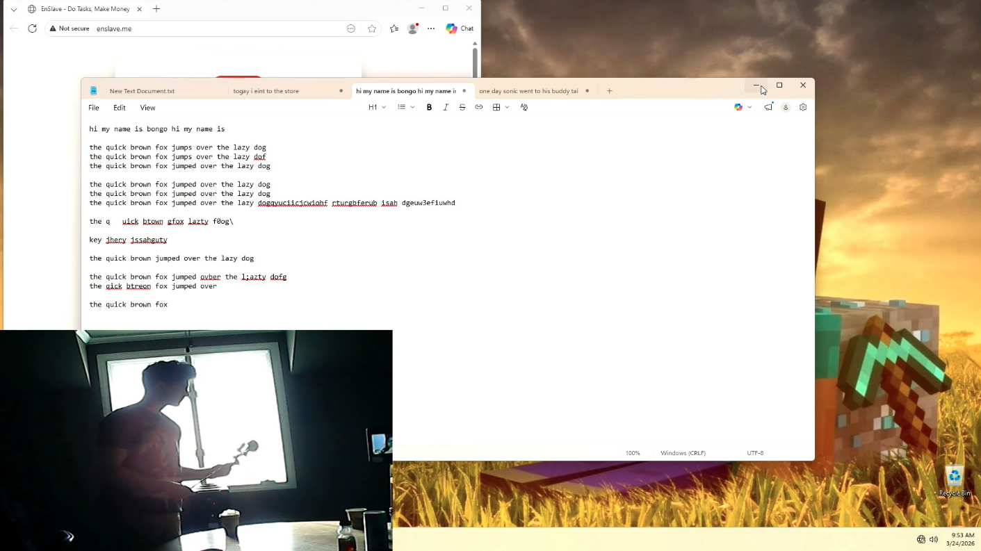 James is literally just typing stupid shit on notepad and cracking himself up