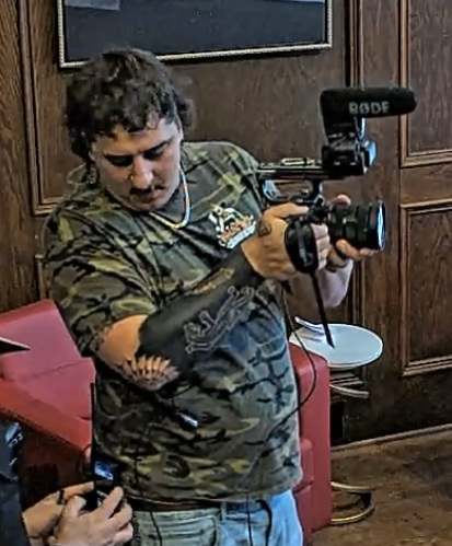 Fat camera man with horrible tattoo edition