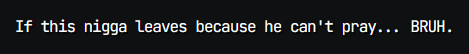 the muslim praying compulsion is so gay and lamedo they do this shit when they're at war too? surely they have provisions that stops them from having to kneel and bow for 10 minutes 6 times a day during wardon't they have taqiyyah or whatever where they can lie and be evil for their benefit pragmatically?bashir should just invoke prayer taqqiyah so he doesn't have to leave the roomthis is a spiritual war after all