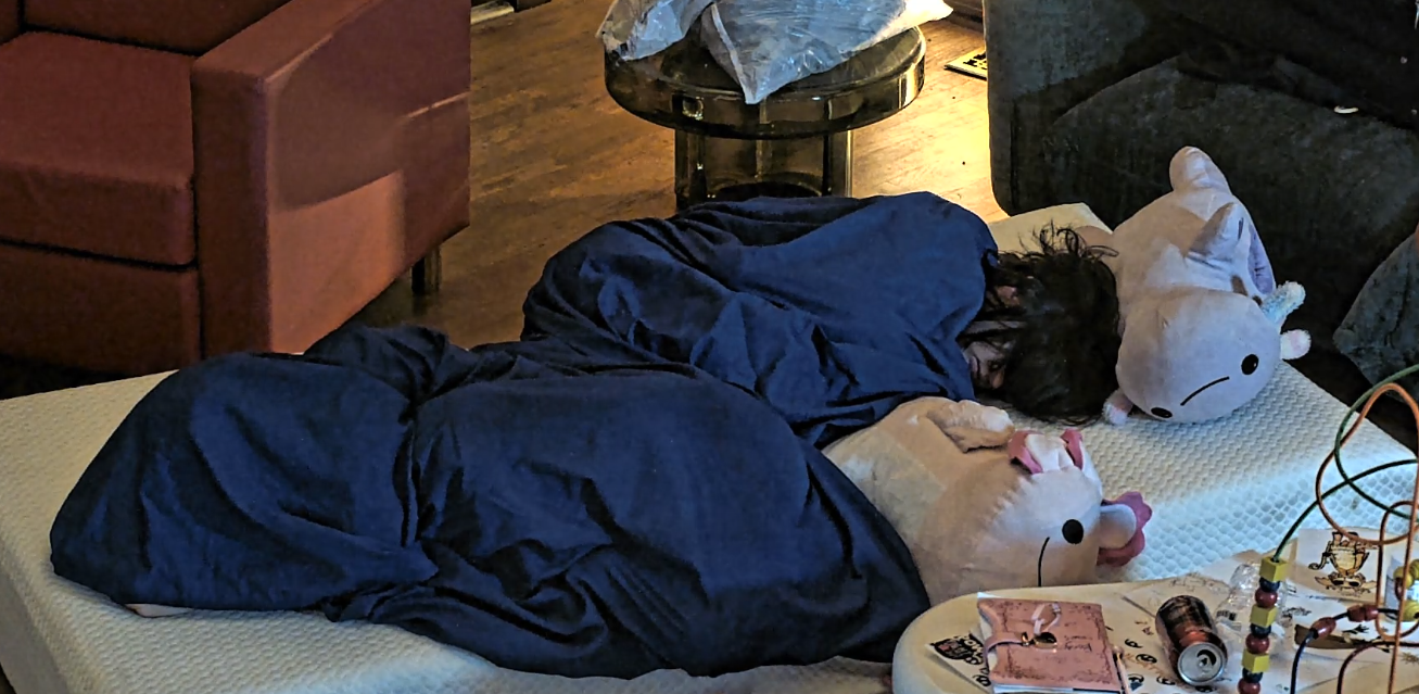 >>218920675The egg thing yesterday fucked him up, he just crashes out like an angry gay man