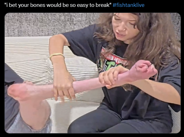 Sleepover edition-- Bashir roughed up JD and tossed him out of the cell, ripping his shirt and exposing JD's seal-like blubber body and ANARCHY tattoo-- Beth self exiled from the cell, thinking she couldn't get eliminated-- James Drake manhandled Emma and tossed her out the cell, Emma seen GIGGLING and SMILING. CaptainChunk cannot be reached at this moment.-- Anissa ate a log of SHIT meant for Beth-- THE CELL has begun! Jet said it's gonna get "gross"...-- New freeloader Beth is here... she's a streamstars orbiter and an ONLYFANS girl.. https://www.tiktok.com/@vampireliquor-- RYAN DUNN TTS got through to Bam... https://x.com/HeartTank64/status/2036544400059408503-- Elimination on THURSDAY>Links:https://fishtank.rip/https://www.fishtank.livehttps://kick.com/fishtankhttps://classic.fishtank.livehttps://x.com/fishtankislivehttps://old.reddit.com/r/fishtanklive/https://www.instagram.com/fishtank.live/https://www.youtube.com/@fishtankislivehttps://fishtanklive.fandom.com/wiki/Season_5>>218919244