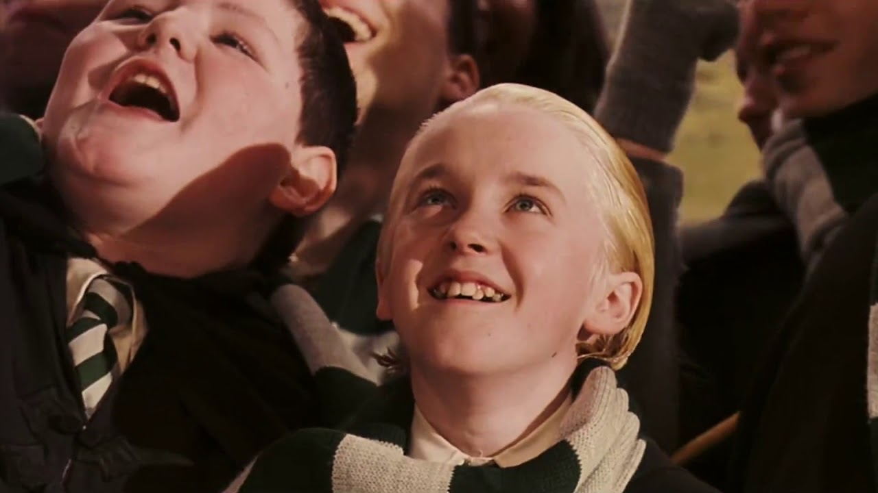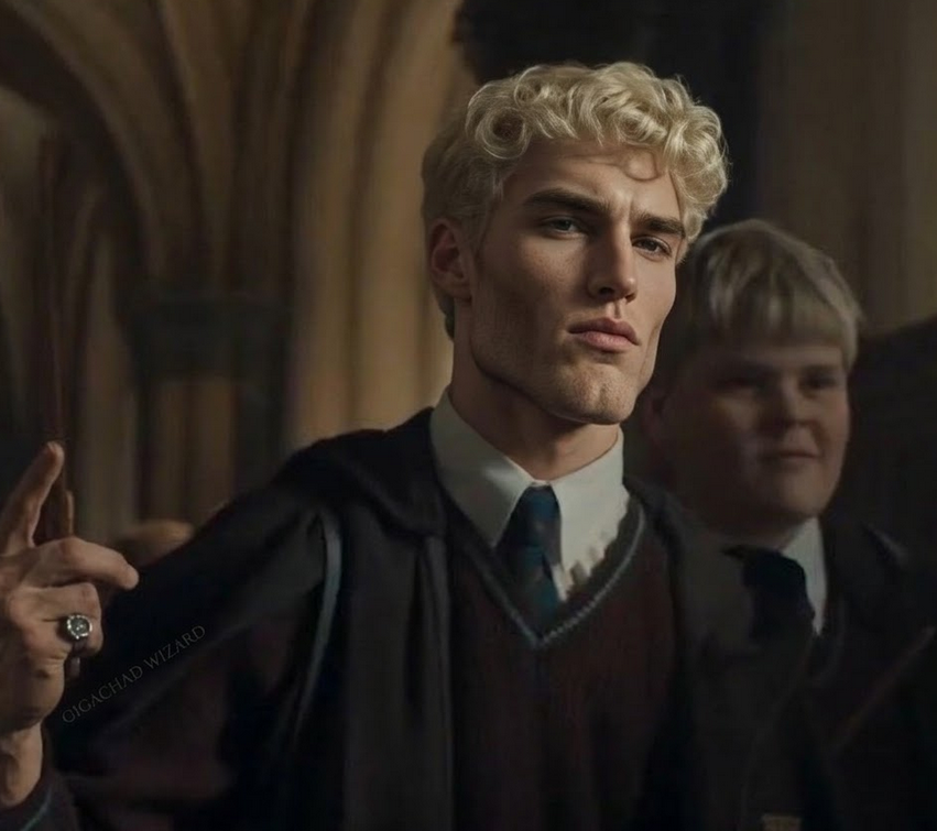 Isn't Malfoy meant to be intimidating? He genuinely looks like a homosexual here. Like, actually. And it's not just the hair.