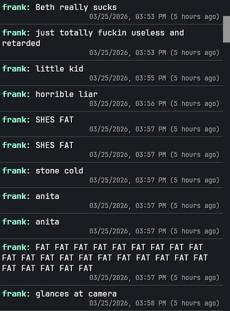 Beth providing content and everyone hates her immediately>b-b-but its cringeWho cares>b-b-but its soapStill more content than all the FRIENDTANK imbeciles inside