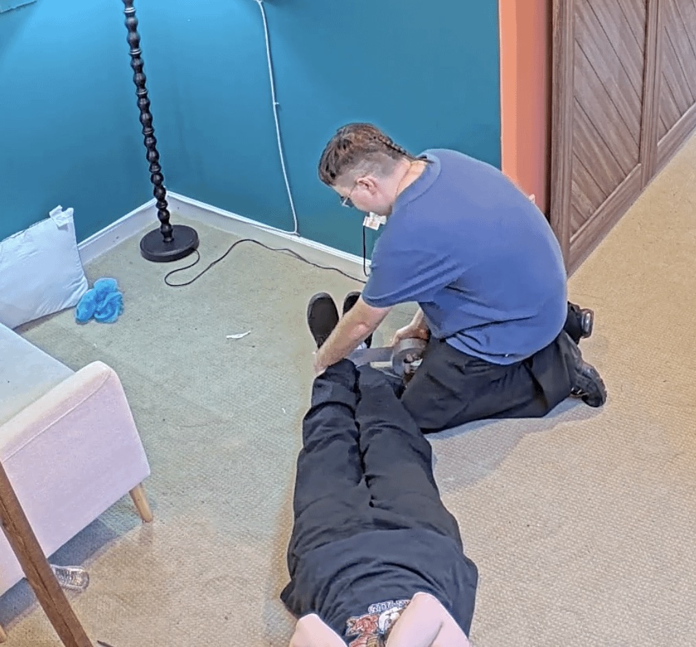 James Drake tucking Bingo in