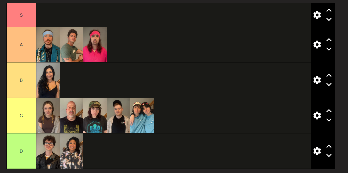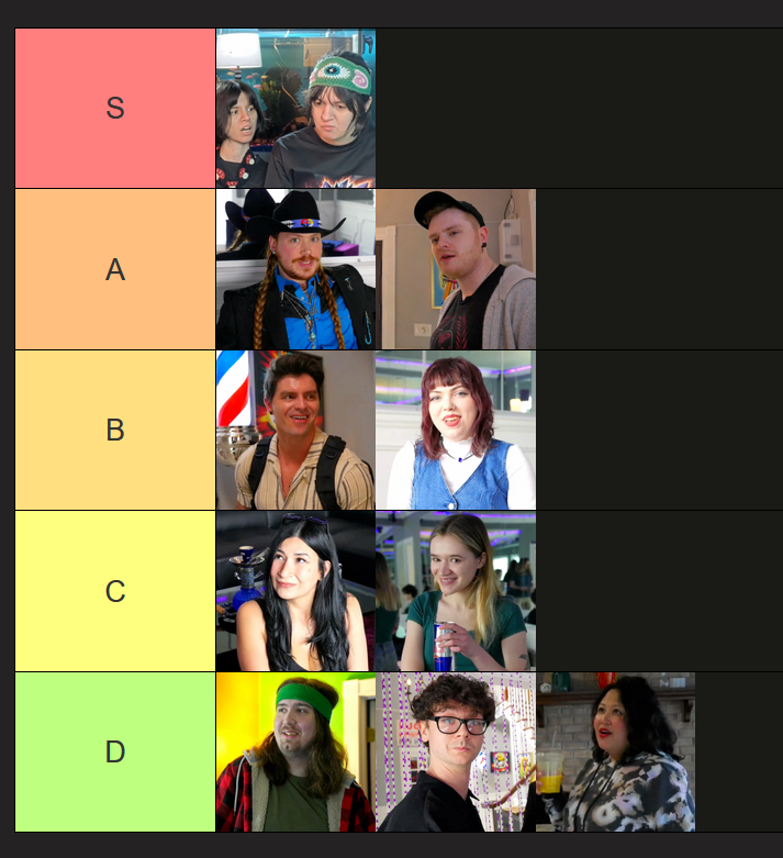 Post your tier list so far. NOTE: tiers are within the context of all seasons, so S-tier is reserved for your Freddy's and Alex Bs