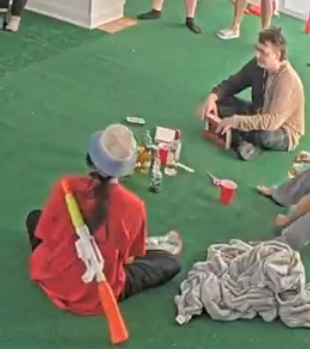 >Taylor looked all sad and said she was crying in the bunk before going downstairs to sleep next to TJ