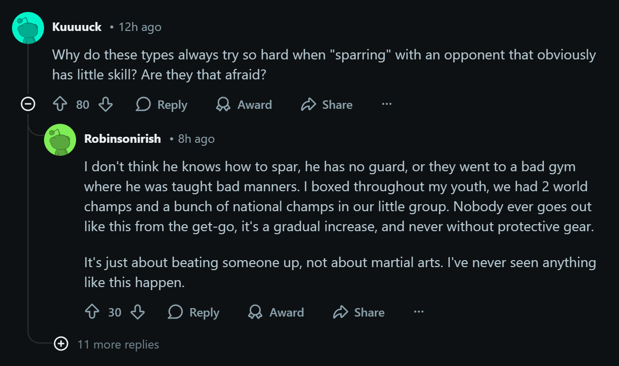 He should just use a weapon like a true chad who knows they are outmatched physically