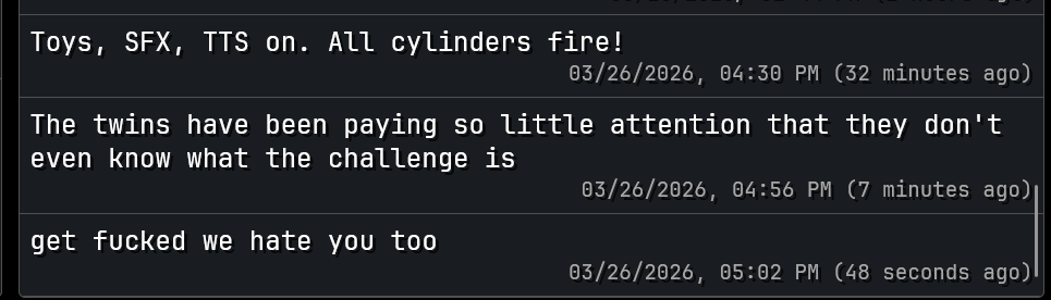 >>218986554Alex stein host that could be there 4 hours a day, with a space theme or something would have been the way to go. This is just nonsensical incoherent bullshit