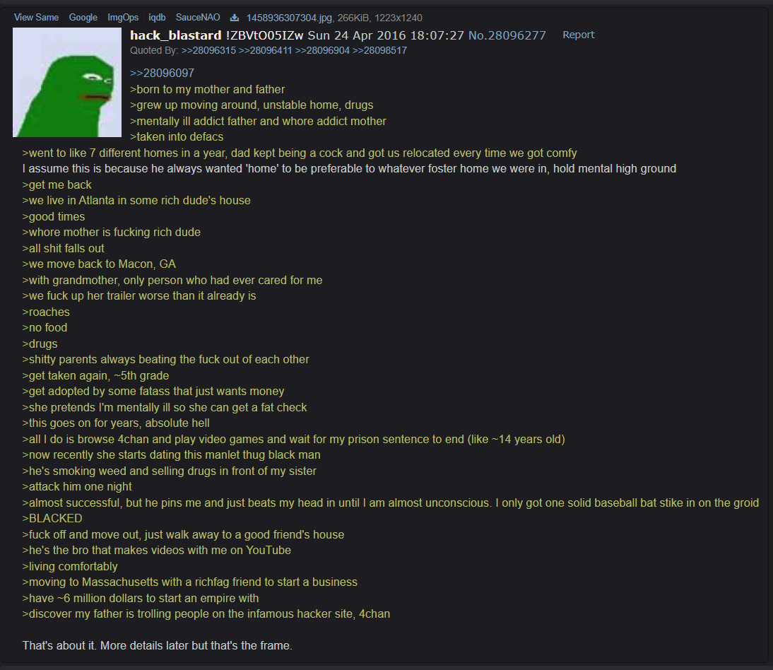 >>218985837what are you gay for Sam or something? you realize he used to roll around with Frank Hassle and get in fights with homeless people, right?
