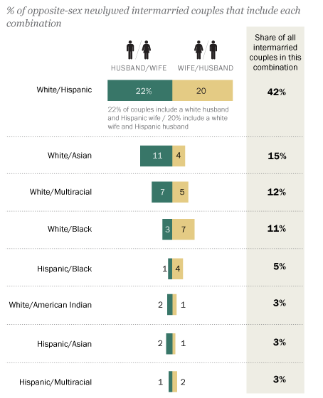 >>219007224Nice lie, white male/latina female and latina male/white female are the most common marriages in the USA other than white/white.cope.