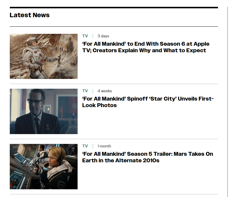 >>219014424heres a wayback machine link to the article the day it was postedhttps://web.archive.org/web/20260326093858/https://variety.com/2026/tv/news/for-all-mankind-end-renewed-final-season-6-apple-tv-1236697248/still none of what you mentioned. alt history is in fact an established genre of media, and its more than just man in the high castle. just because man in the high castle did the alternate universe stuff, doesnt mean all alt history shows do