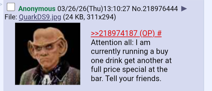 >>219017165>Bajoran government more patriotic than British oneMaybe you guys just need to suffer 50 years of (brutal?) occupation first