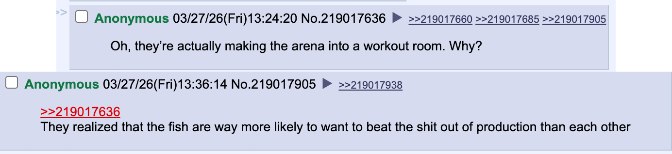 >>219021438Thanks looks like I didn't miss anything >>219021410Shut the fuck up and get in the ring Mints you always say you wanna fight so go fight