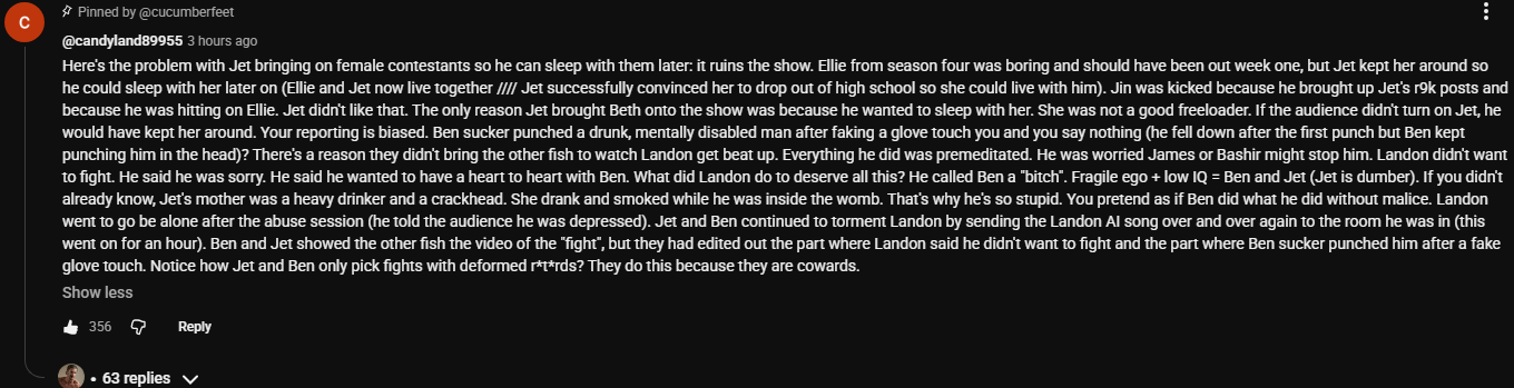 >>219036199Bashir gets wrapped up in his wild religion, which is cool in its own way but as it was shown tonight he uses it to feed his own ego. He thinks he’s better than everybody because of his religion which is a direct contradiction. He was exposed and instead of dogpiling him for it James bothered to make sure he was OK, him playing the actual game to get him out isn’t a problem at all but he went beyond the game and gave a fuck about another human being actually. Unironically James embodies Bash’s religious beliefs more than he does.