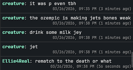 leave me alone dude I gotta moderate the chat