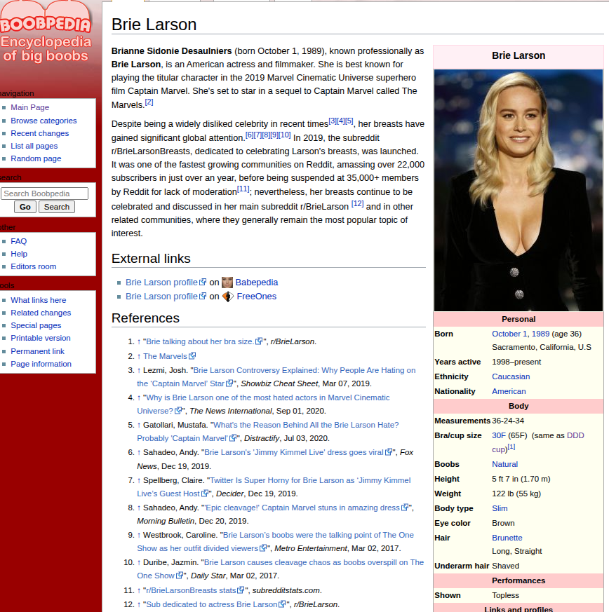 >>219045179facts about Brianne Larson>said white men shouldn't review movies>said tsa agent "assaulted" her by asking her out>claimed she does her own stunts, and that she's better at it than Tom Cruise>Mocked the dead actress Shirley Temple, claiming she was a better actress than her.>Mocked Stan Lee death>Replied to a random guy on reddit that she did dated a black guy, instead of actually replying to questions about movies she did>Didn't congratulate Casey Affleck for his Oscar win while presenting his award because of his rape allegations. Then tried to act bipartisan when being asked about Johnny Depp>Assaulted Don Cheadle>threw boyfriend out of her house because she wanted to play a mario game>Shilled NFT scam>Joined fast and furious franchise and the movie flopped>Showed up in Jimmy Kimmel in a sexy dress because her movie career was a flop, after complaining about "sexist comic book costumes