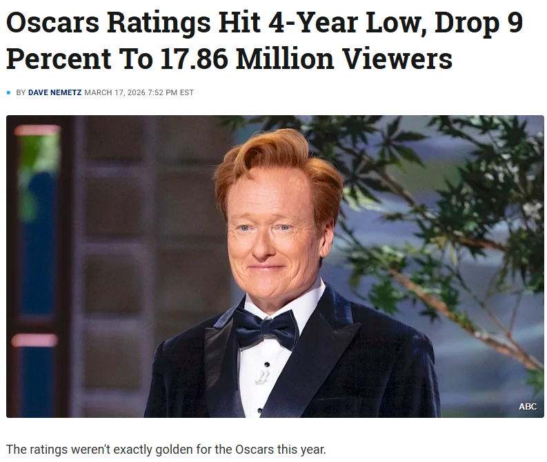 There's no purpose to watching the Oscars anymore when websites already tell you what is good, it will go back to being an unaired event and we will get the list every year after the fact.