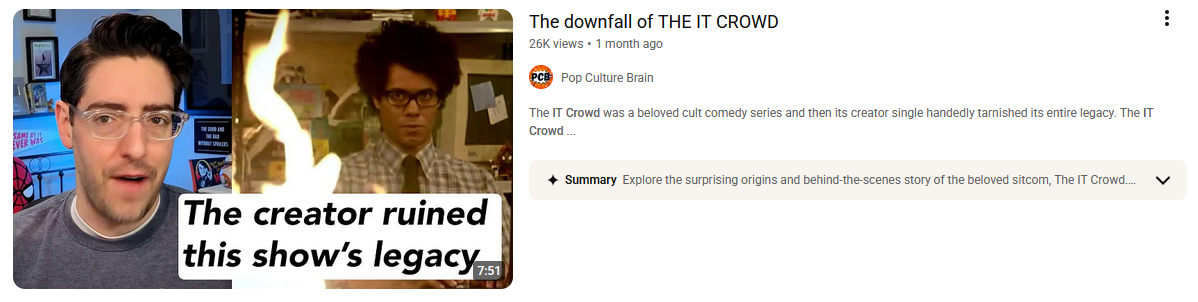 The first couple seasons of Big Bang Theory are very watchable and comparable to IT Crowd. Very self aware actual low hanging fruit nerd stuff that is comfy normie tier. It somehow makes me nostalgic.