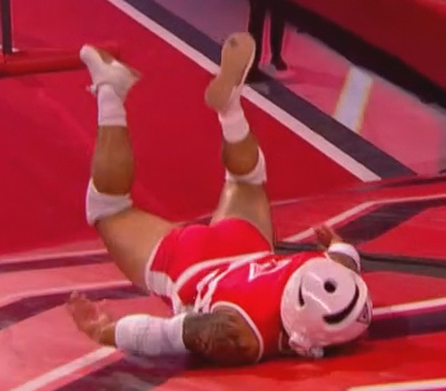 >strategy in every game is to put his head down and run forward even if it disqualifies him in 0.1 seconds