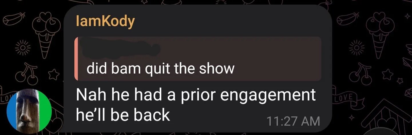 >>219060426no, bam said the show was ending in a week 1 week ago. as in a 2 week season, nigger. do you even watch the show?