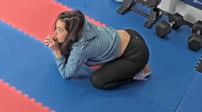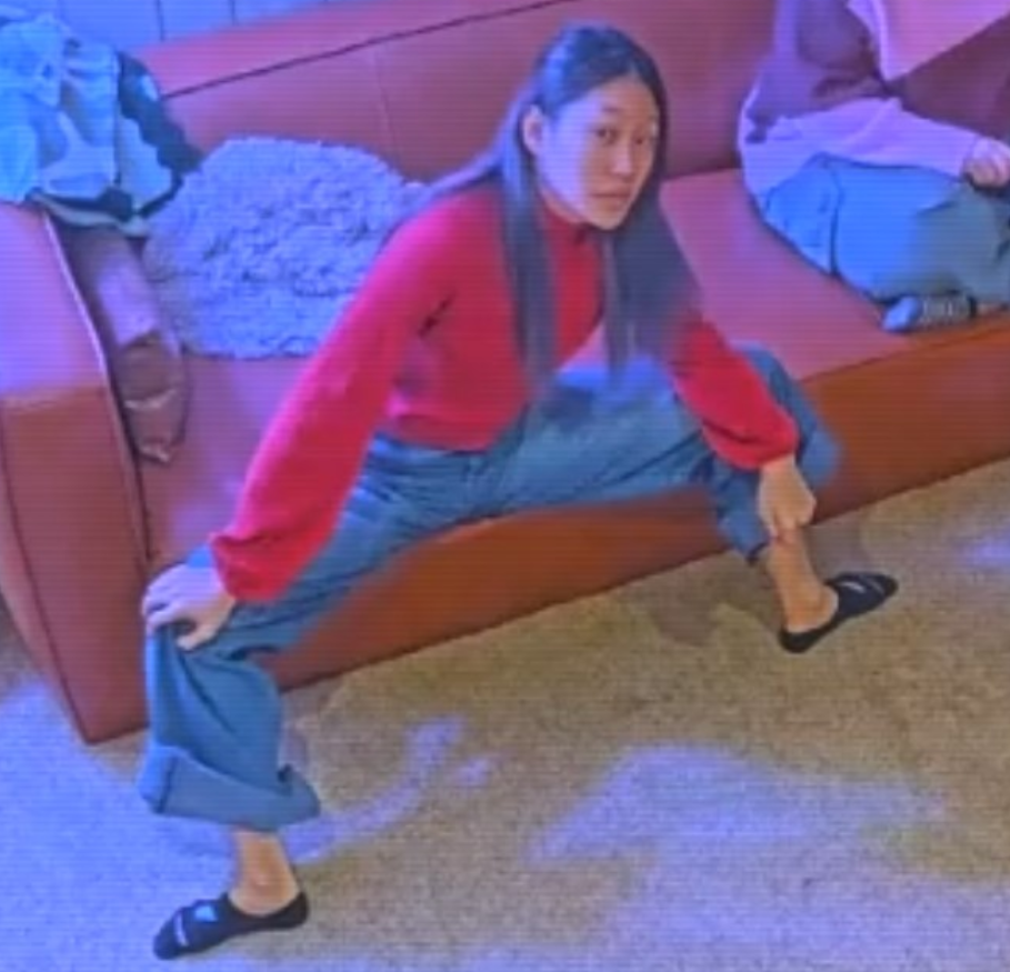 did anyone clip laura sliding into splits earlier when they were stretching?