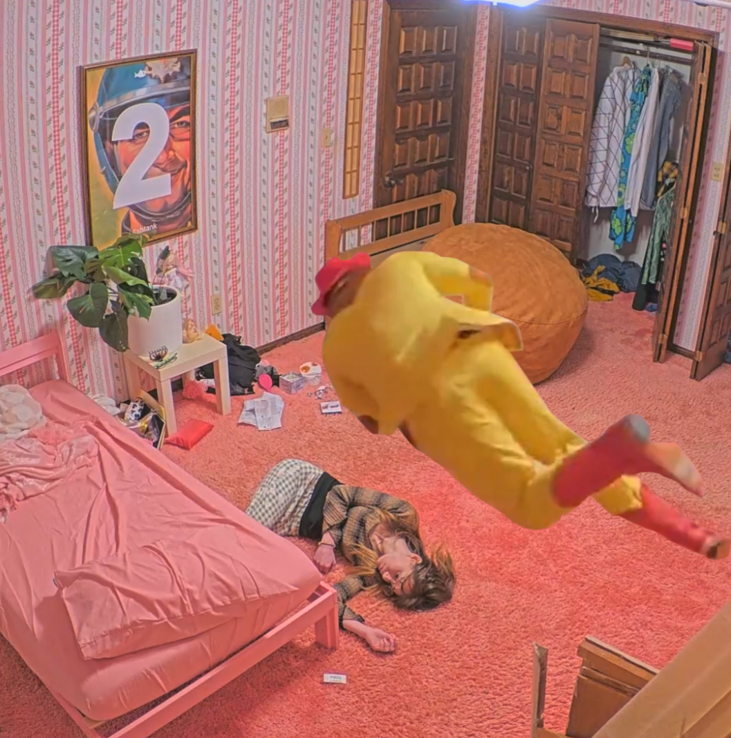 Switching from closet to dorm and seeing the twins sleeping right outside the door makes this funny I think