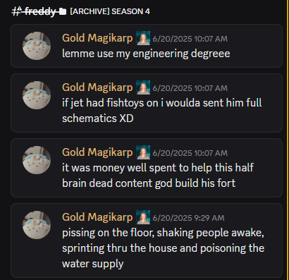 JD is in the Mizzcord but has never posted anything in there. He posted a Ted meme in the official fishtank discord. I don't see him in the other various fishcords.