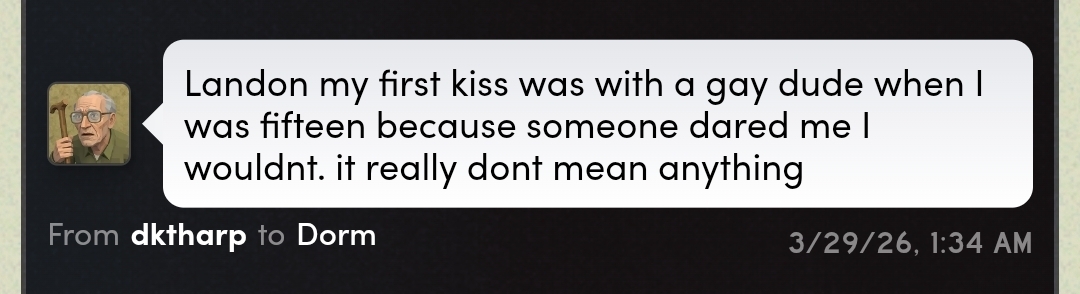 Imagine if Landon keeps fighting this until like 4am until he finally relents and goes to kiss her and by then she's so drunk that she vomits into his mouth