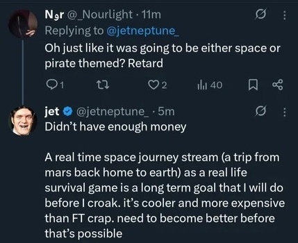 >>219090329>>219090359Jet only did it too because Ice Poseidon mindraped him so bad that he turned Fishtank into his own down syndrome version of Kick.com